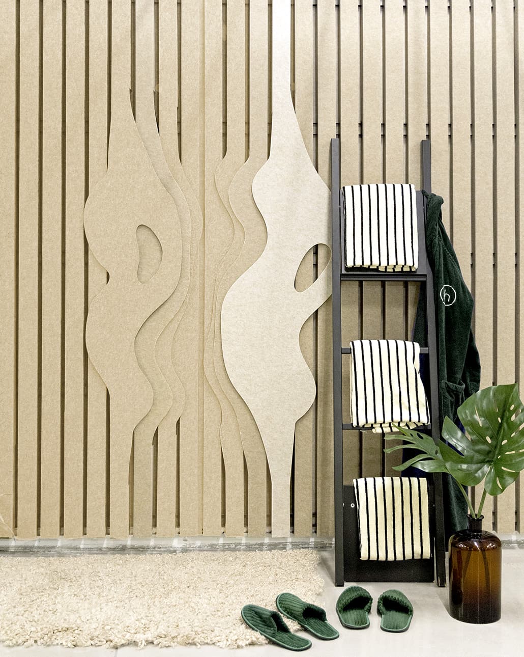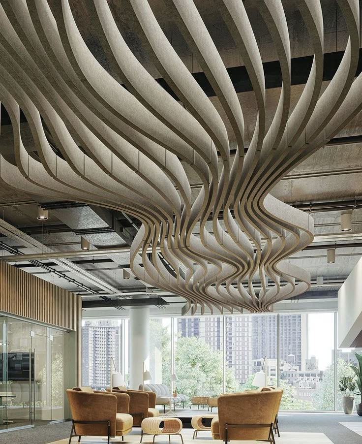 - Elementos funcionales como separadores de ambiente y esculturas acústicas.