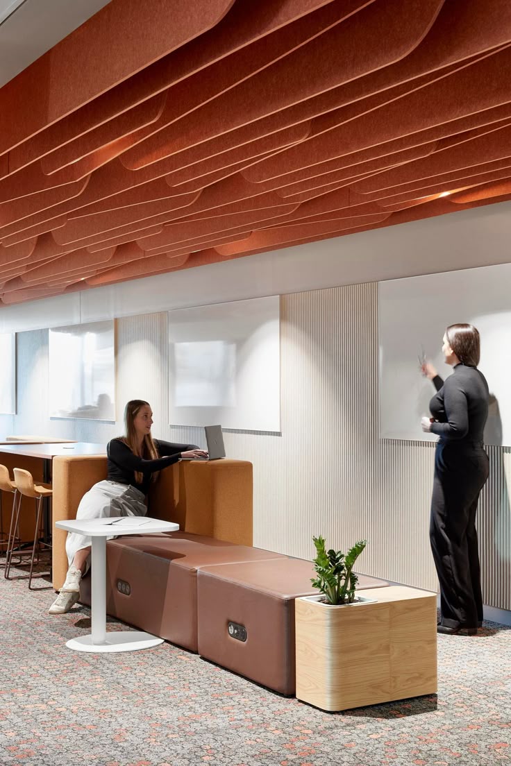 En oficinas y espacios corporativos para mejorar la inteligibilidad del habla y reducir distracciones.